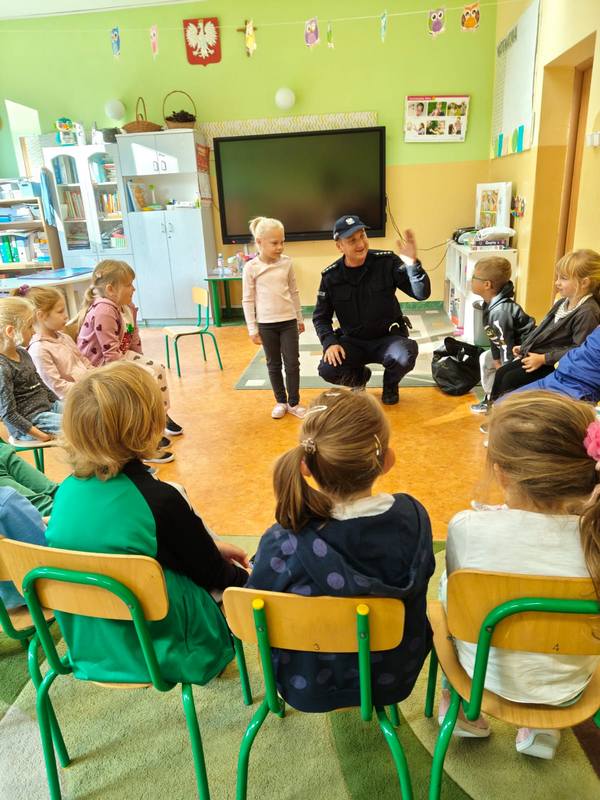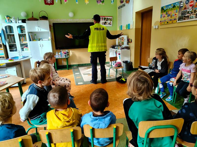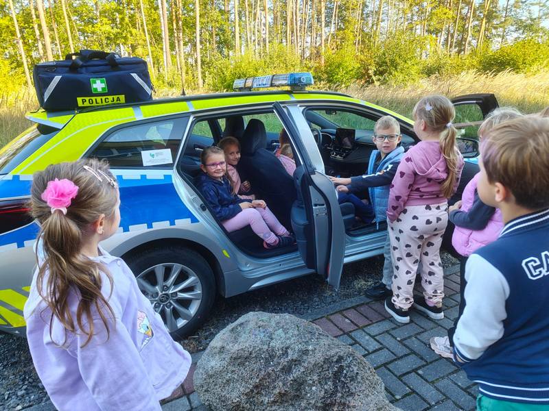 Ogromnym zainteresowaniem cieszyły się wśród przedszkolaków opowiadania o codziennej pracy policjanta i demonstrowanie sprzętu policyjnego, ale największą atrakcją był radiowóz policyjny, zaparkowany przed szkołą. Dzieci mogły go obejrzeć a nawet wejść do środka.
