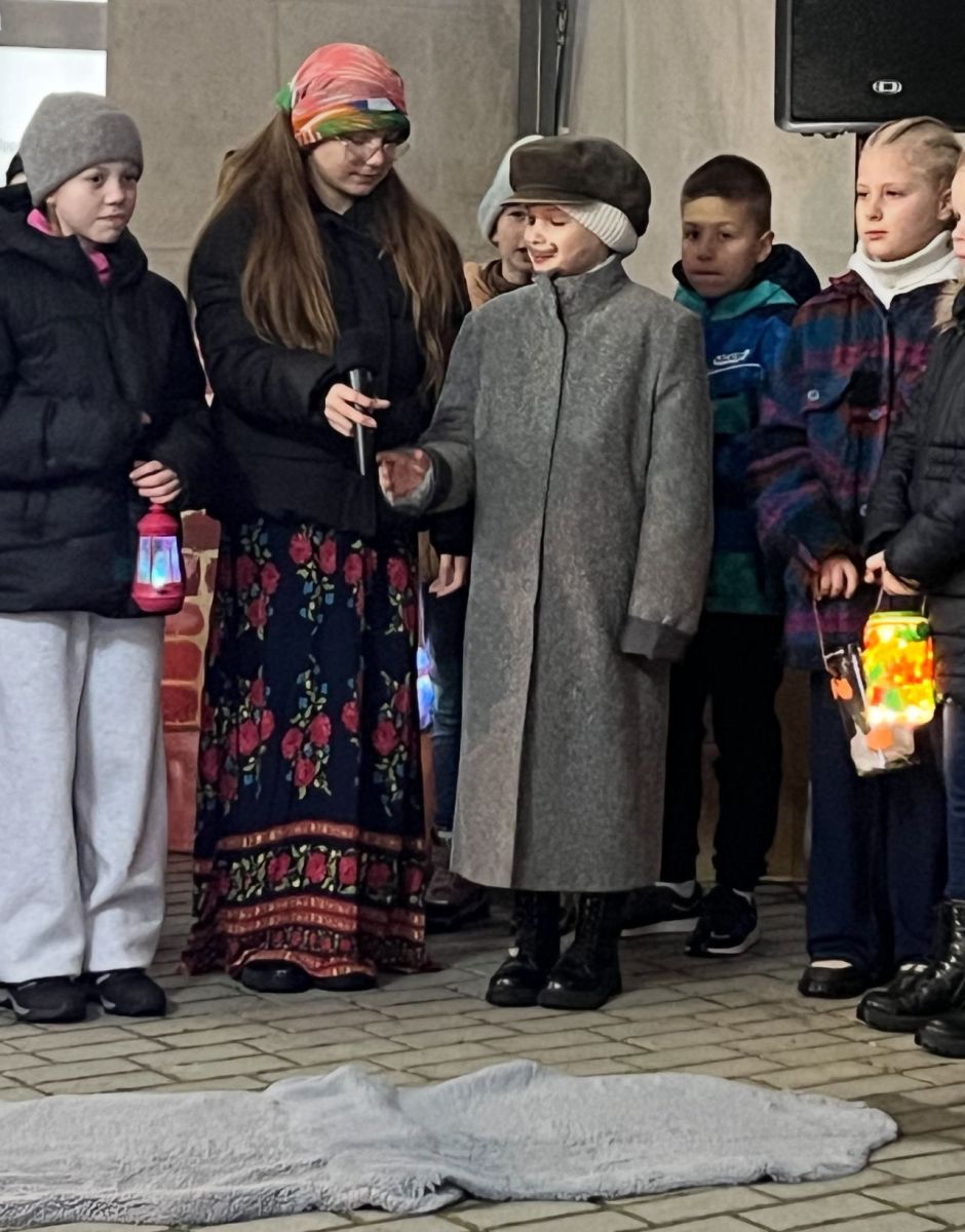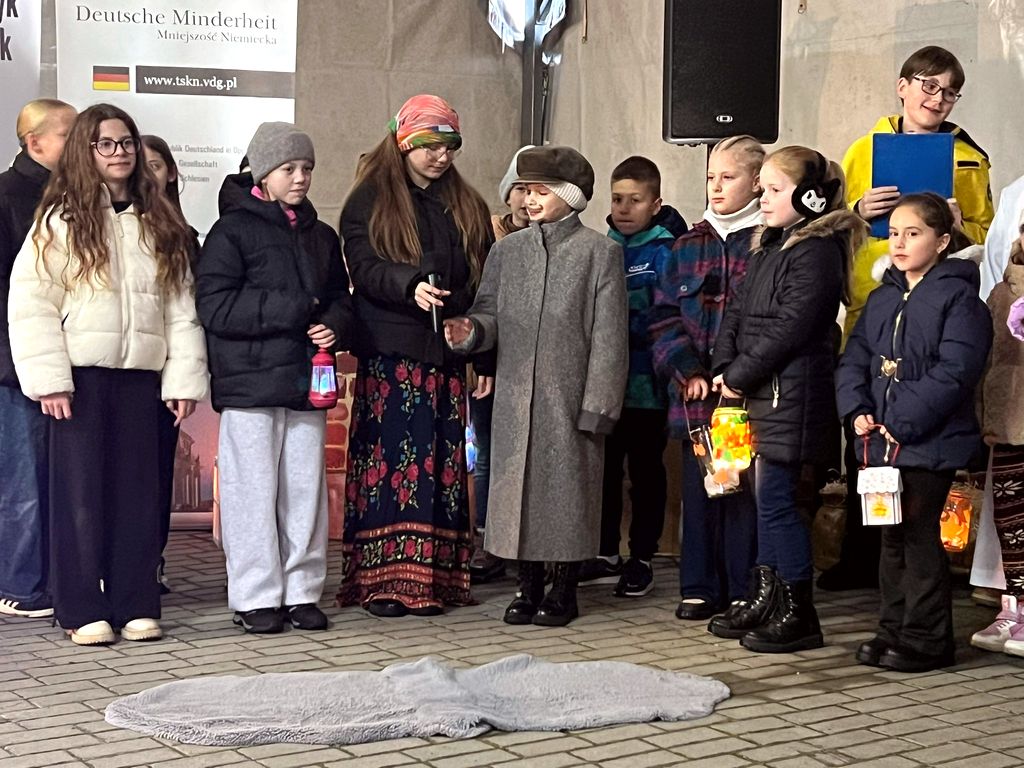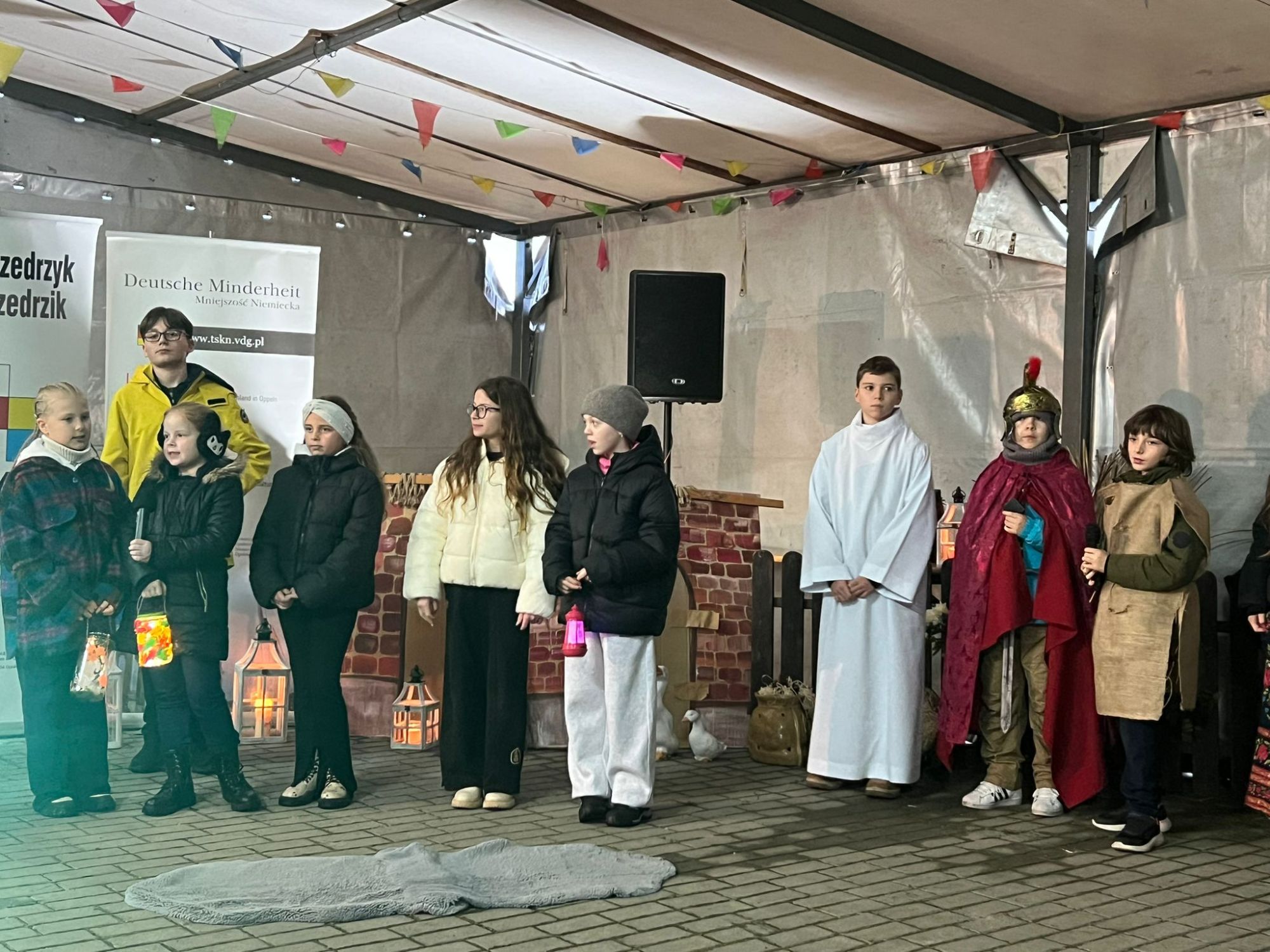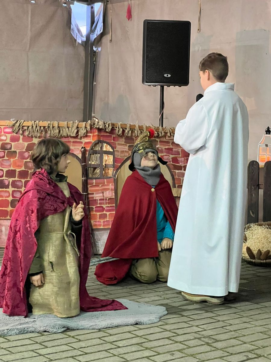 Nie obyło się także bez krótkiej scenki teatralnej, obrazującej scenę z życia św. Marcina, w której dzieli się on z żebrakiem swoim żołnierskim płaszczem. W scence wystąpili: Szymon Niesłony, Karol Borowski z Kl. VII, Milena Leś i Marta Fikus z klasy V, oraz Bruno Borowski z kl. III, a w rolę św. Marcina wcielił się Maksym Szczepaniak z klasy V. Nad przygotowaniem programu artystycznego czuwała pani Izabela Grys.