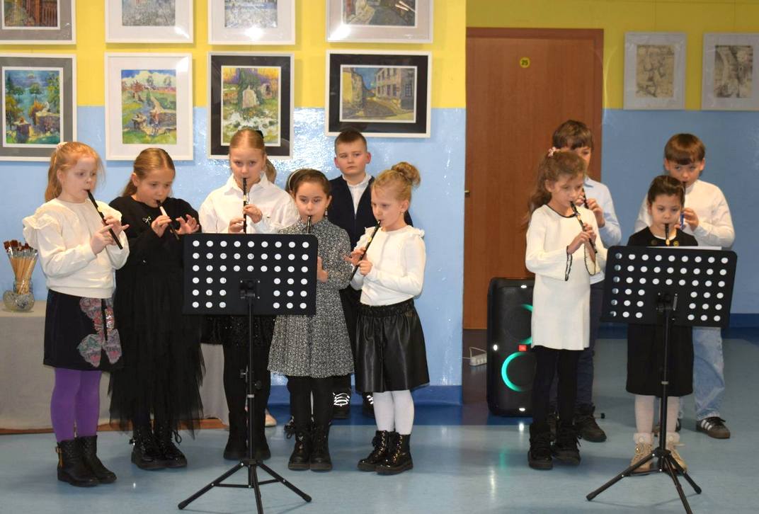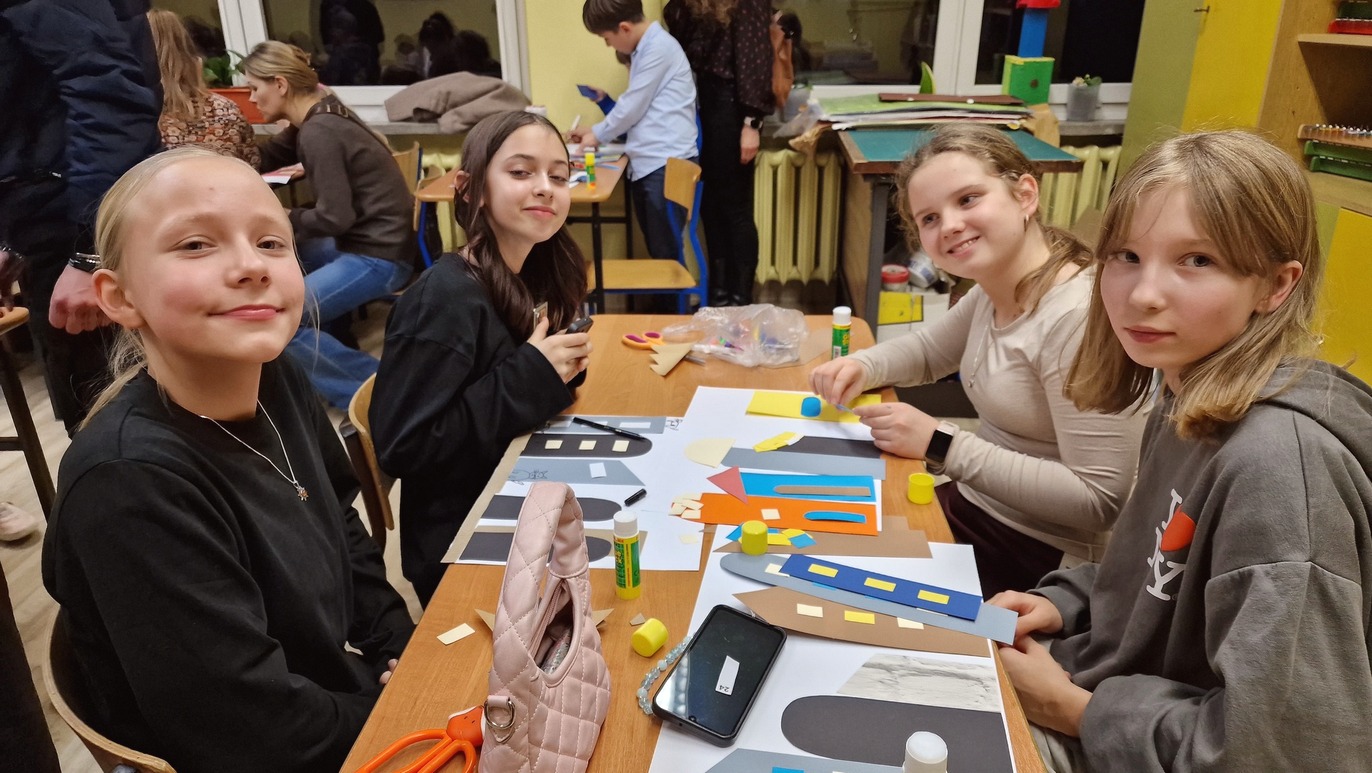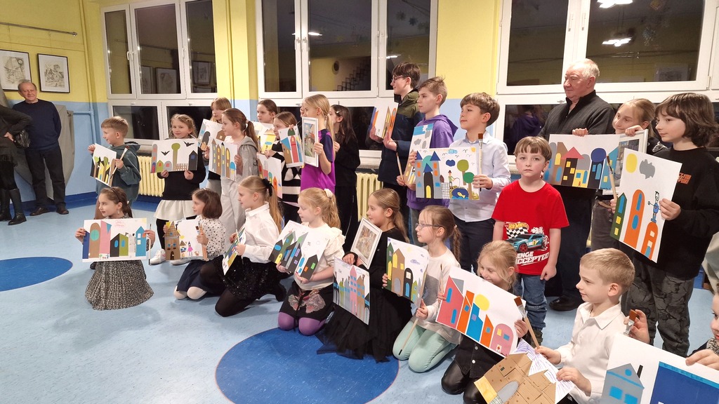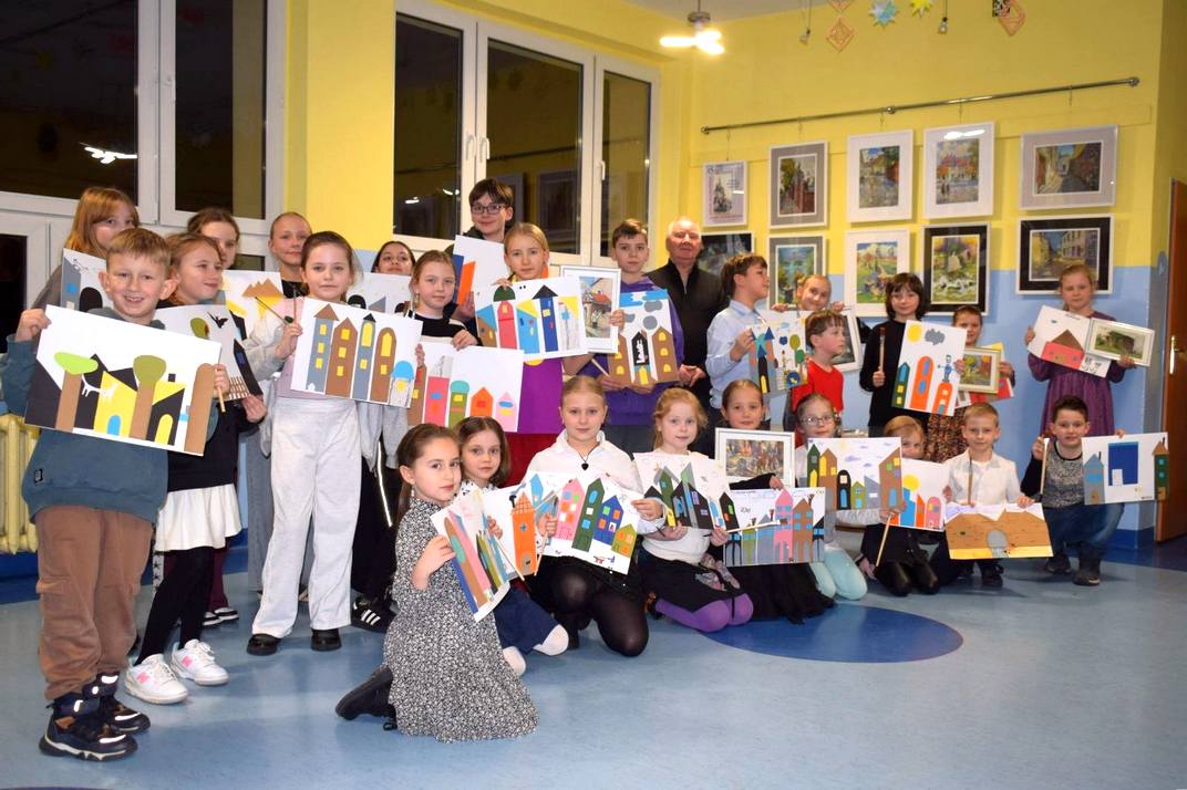 Po występie instrumentalnym w wykonaniu uczniów klasy drugiej i oficjalnym otwarciu wystawy, goście zostali zaproszeni na słodki poczęstunek przygotowany przez rodziców, a dzieci, wyposażone w nożyczki, klej i pisaki, przystąpiły do akcji plastycznej „Miasta i ludzie”, której celem było stworzenie miasta z dodatkami sztafażu w postaci ludzi lub zwierząt. Na koniec uczestniczące w akcji plastycznej dzieci wzięły udział w losowaniu nagród, wśród których najcenniejszymi było aż pięć obrazów podarowanych przez Adama Werwińskiego.