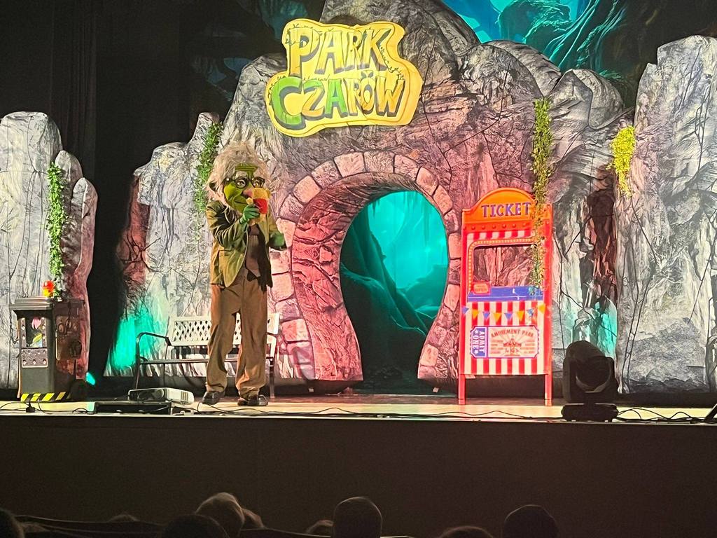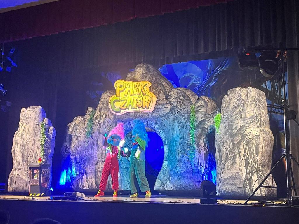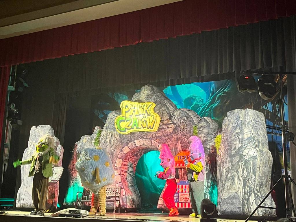 Spektakl od pierwszych chwil zachwycił widzów barwną scenografią, dynamiczną akcją i wspaniałą muzyką. „Park Czarów” to współczesny musical dla dzieci, który przeniósł nas do magicznego świata opuszczonego parku rozrywki. Na scenie pojawiły się sympatyczne trolle, które postanowiły uratować to miejsce przed złym czarodziejem oraz jego pomocnikami – Lenistwem, Strachem i Chciwością.